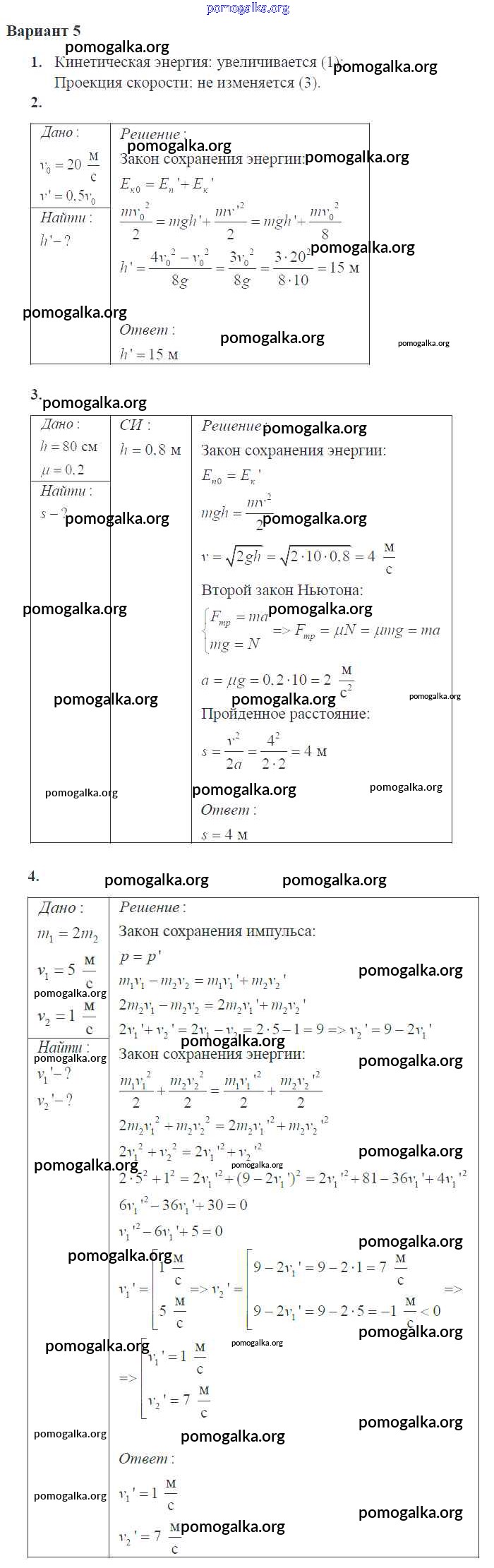 Готовые ответы - Физика 10 класс самостоятельные и контрольные работы Ерюткин Е.С. - кр законы сохранения в механике 5