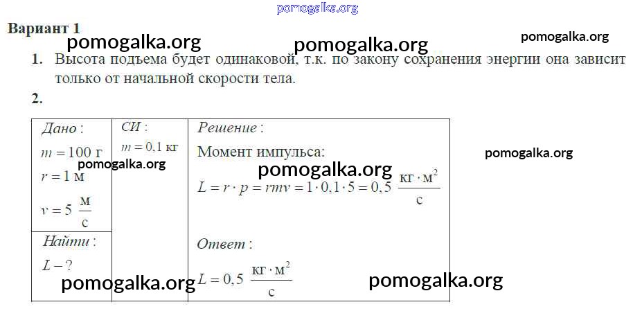Готовые ответы - Физика 10 класс самостоятельные и контрольные работы Ерюткин Е.С. - ср №8 законы сохранения в механике 1