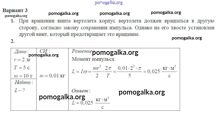Готовые ответы - Физика 10 класс самостоятельные и контрольные работы Ерюткин Е.С. - ср №8 законы сохранения в механике 3