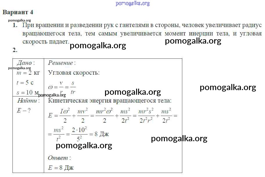 Готовые ответы - Физика 10 класс самостоятельные и контрольные работы Ерюткин Е.С. - ср №8 законы сохранения в механике 4