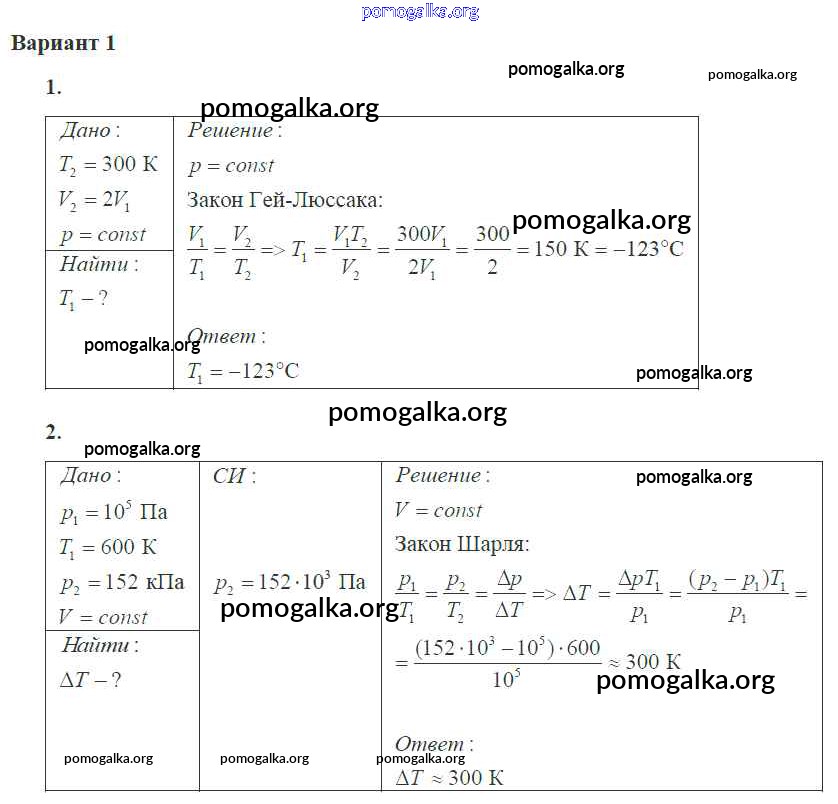Готовые ответы - Физика 10 класс самостоятельные и контрольные работы Ерюткин Е.С. - ср №3 основы мкт 1