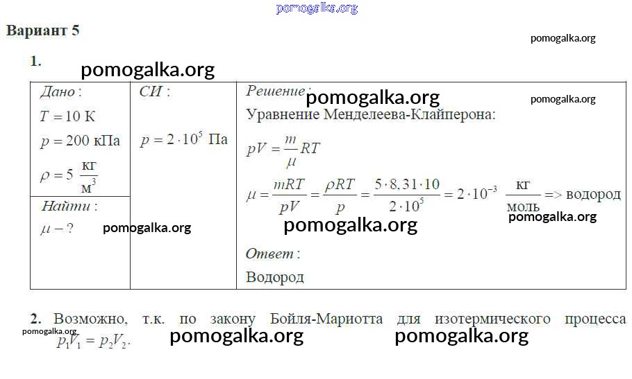 Готовые ответы - Физика 10 класс самостоятельные и контрольные работы Ерюткин Е.С. - ср №4 основы мкт 5