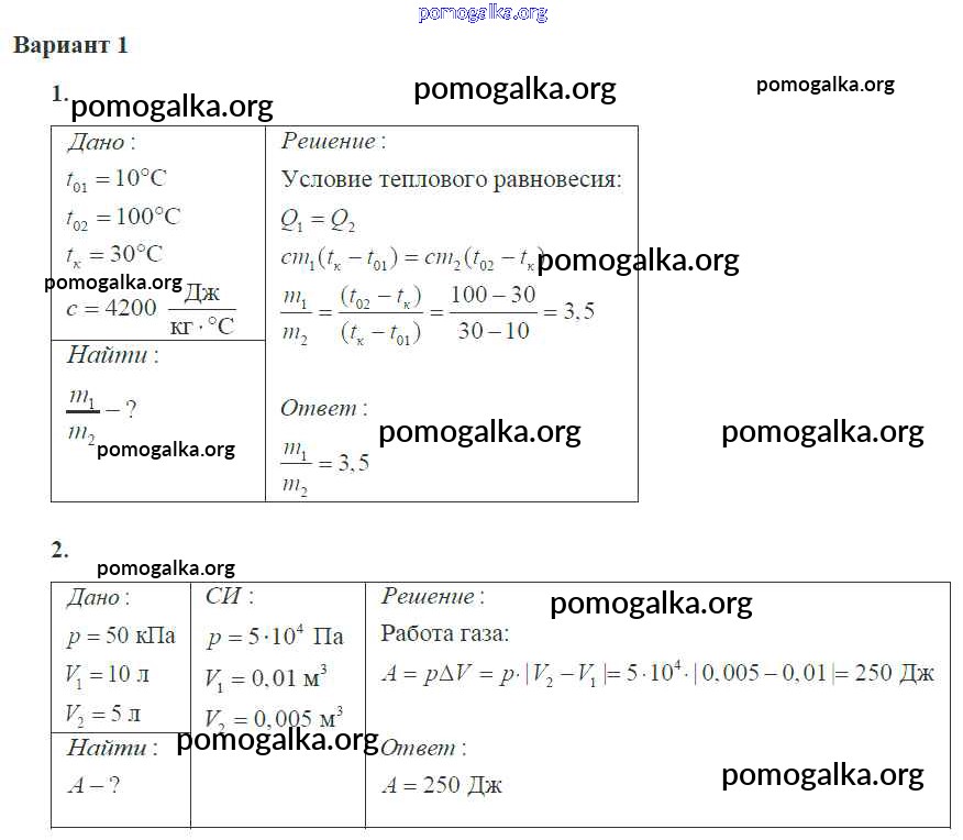 Готовые ответы - Физика 10 класс самостоятельные и контрольные работы Ерюткин Е.С. - ср №2 основы термодинамики 1