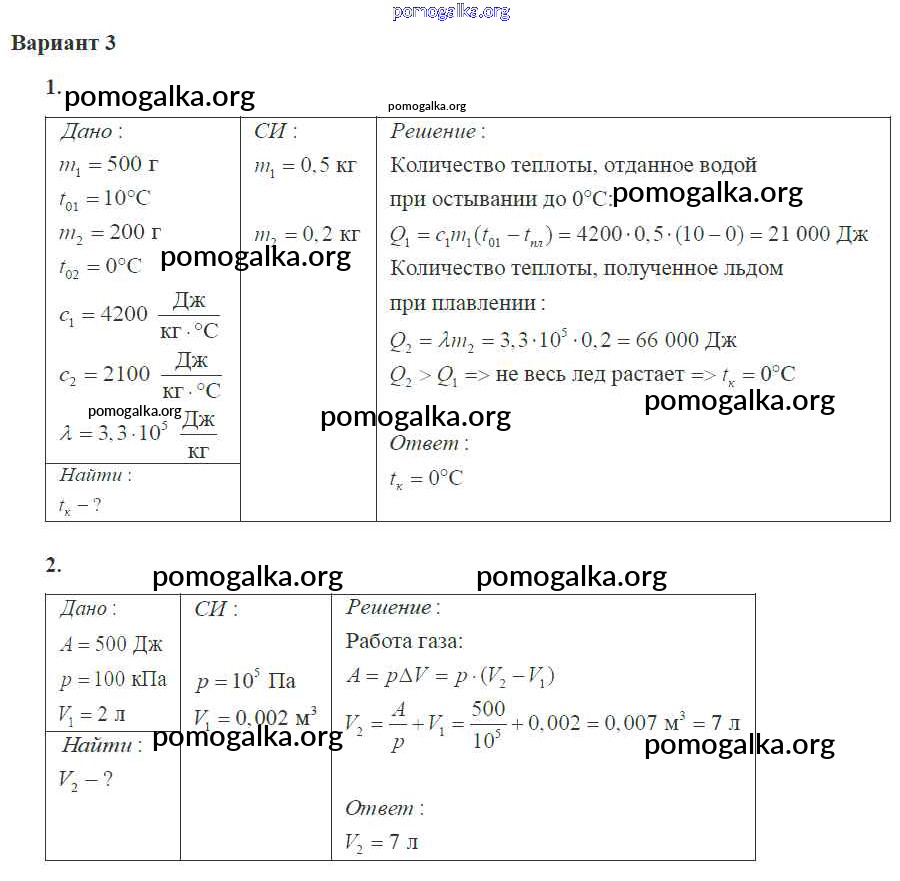 Готовые ответы - Физика 10 класс самостоятельные и контрольные работы Ерюткин Е.С. - ср №2 основы термодинамики 3