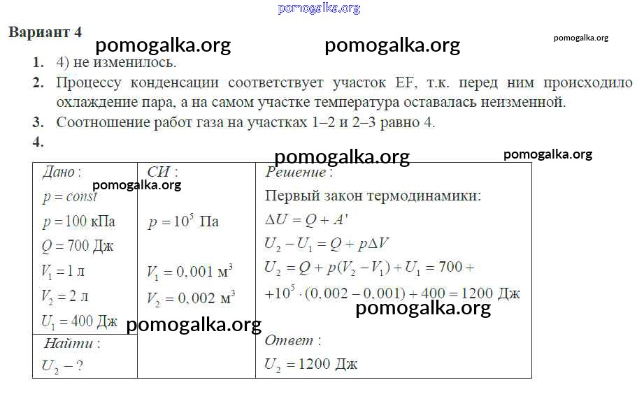 Готовые ответы - Физика 10 класс самостоятельные и контрольные работы Ерюткин Е.С. - КР основы термодинамики 4