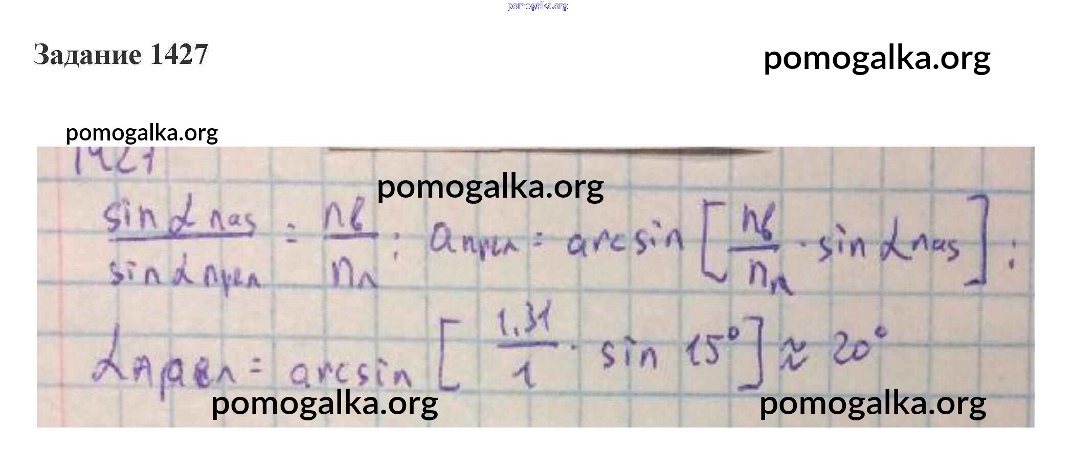 Готовые ответы - Физика 10-11 класс сборник задач Степанова - 59. преломление света. закон преломления. полное отражение геометрическая оптика 1427