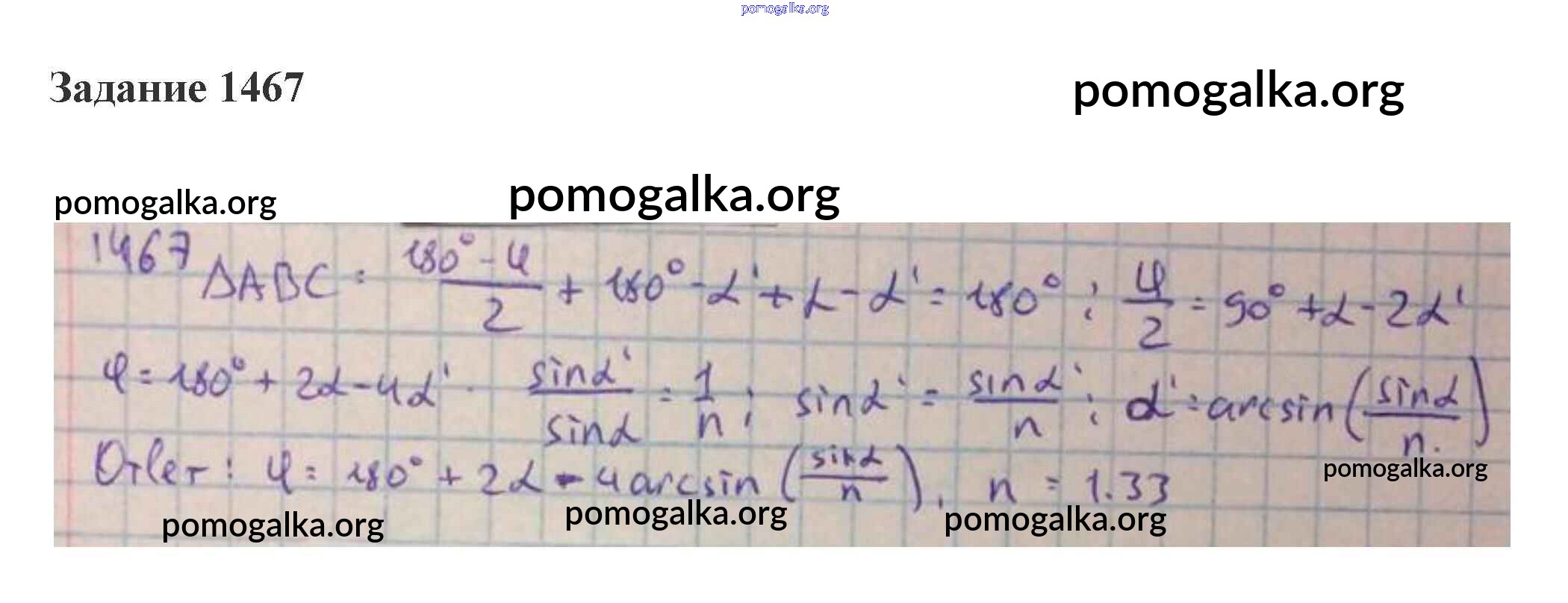 Готовые ответы - Физика 10-11 класс сборник задач Степанова - 59. преломление света. закон преломления. полное отражение геометрическая оптика 1467
