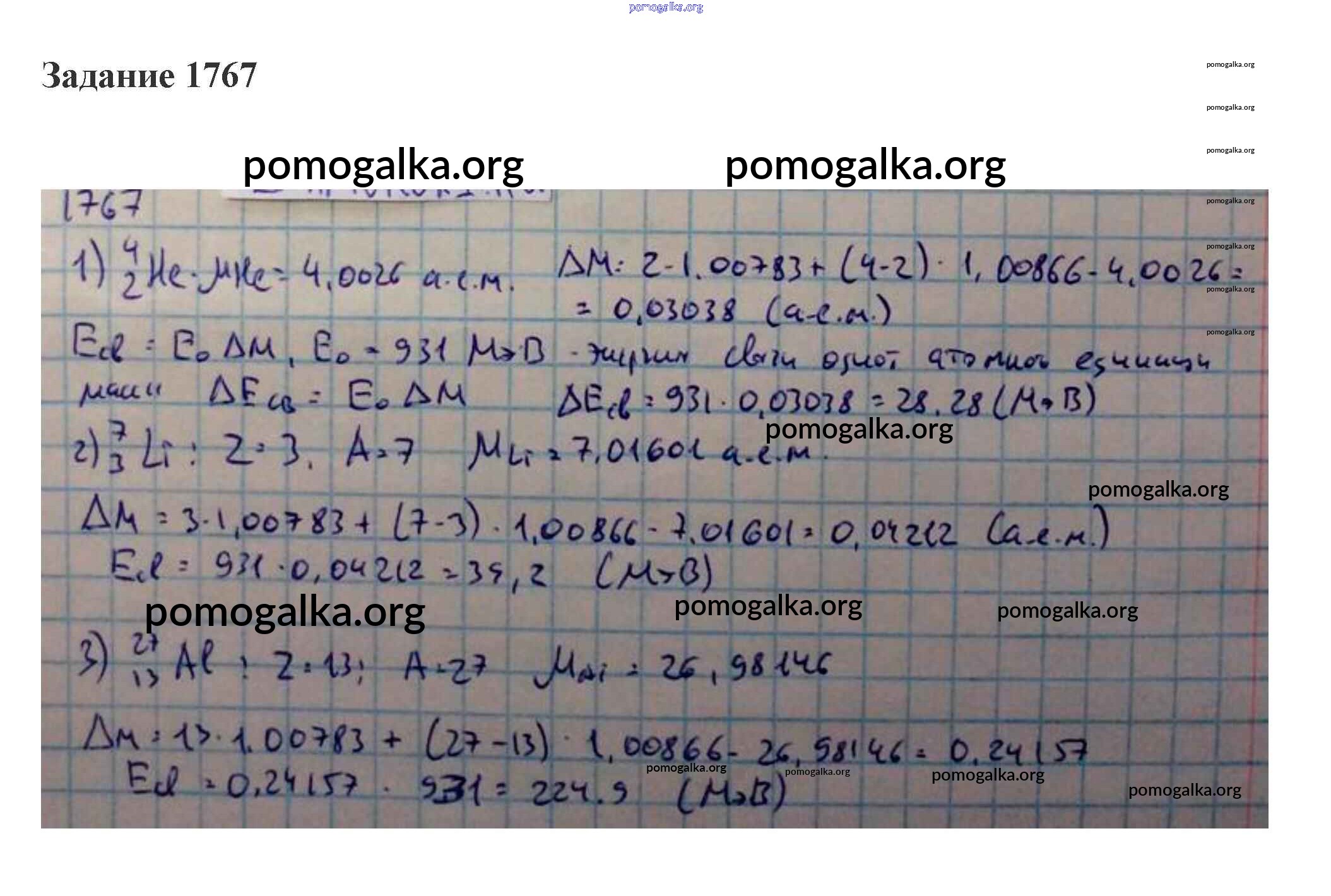 Готовые ответы - Физика 10-11 класс сборник задач Степанова - 72. энергия связи ядер. ядерные реакции атомная физика 1767