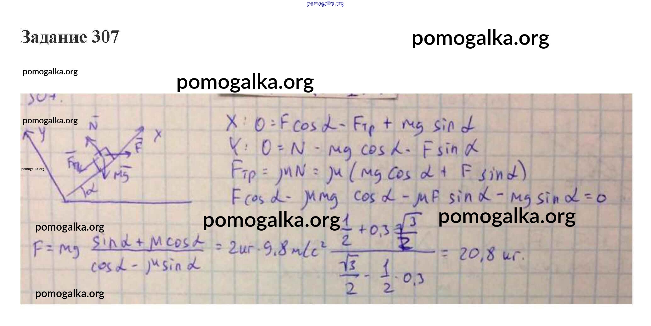 Готовые ответы - Физика 10-11 класс сборник задач Степанова - 16. движение тел под действием нескольких сил. движение в горизонтальном и вертикальном направлении основы динамики 307