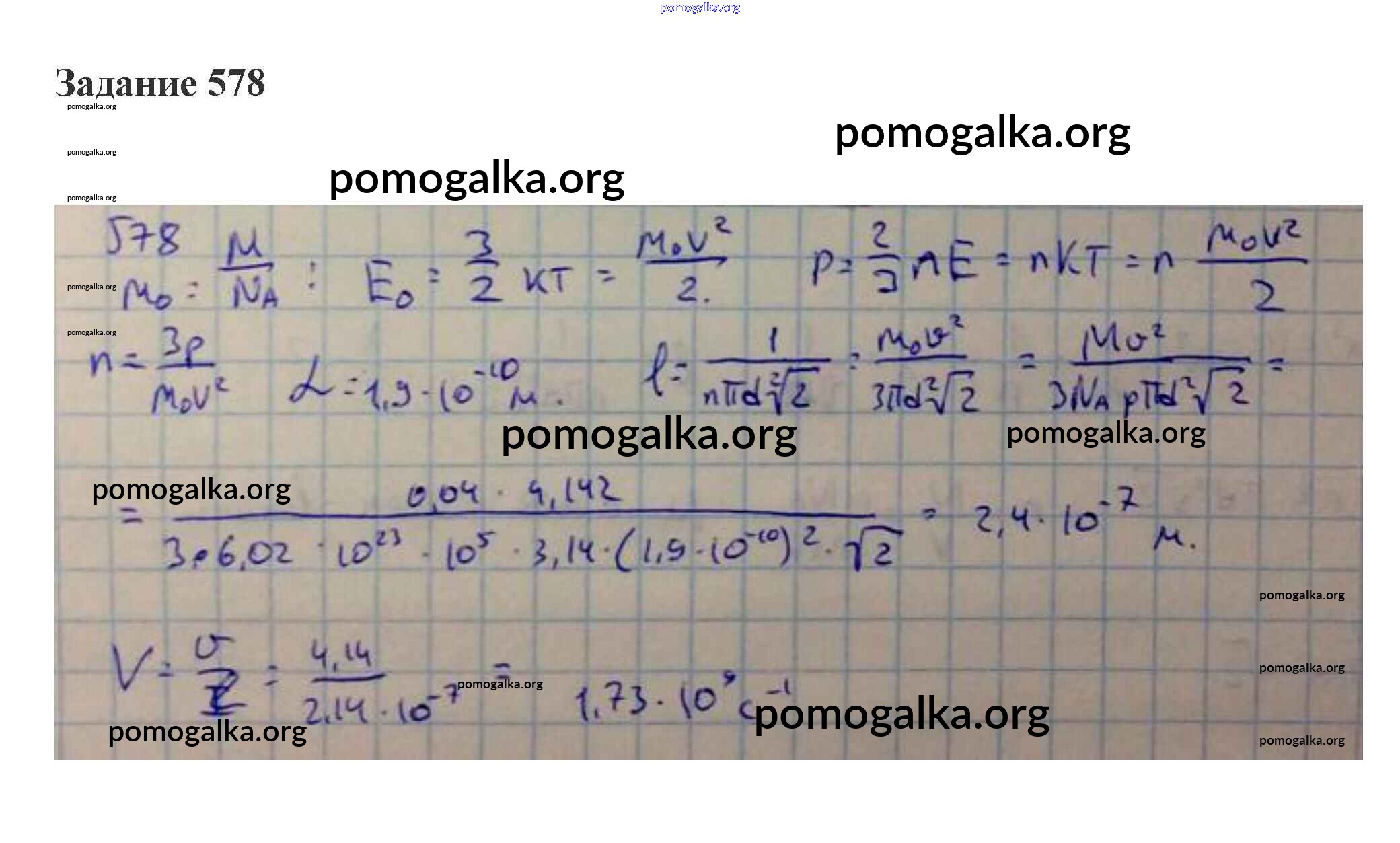Готовые ответы - Физика 10-11 класс сборник задач Степанова - 26. основное уравнение МКТ. скорость молекул свойства газов 578