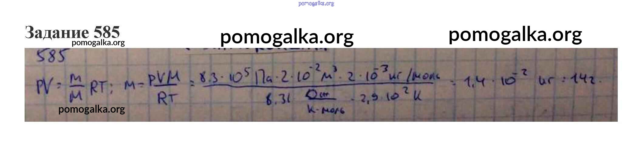 Готовые ответы - Физика 10-11 класс сборник задач Степанова - 27. уравнение состояния идеального газа свойства газов 585