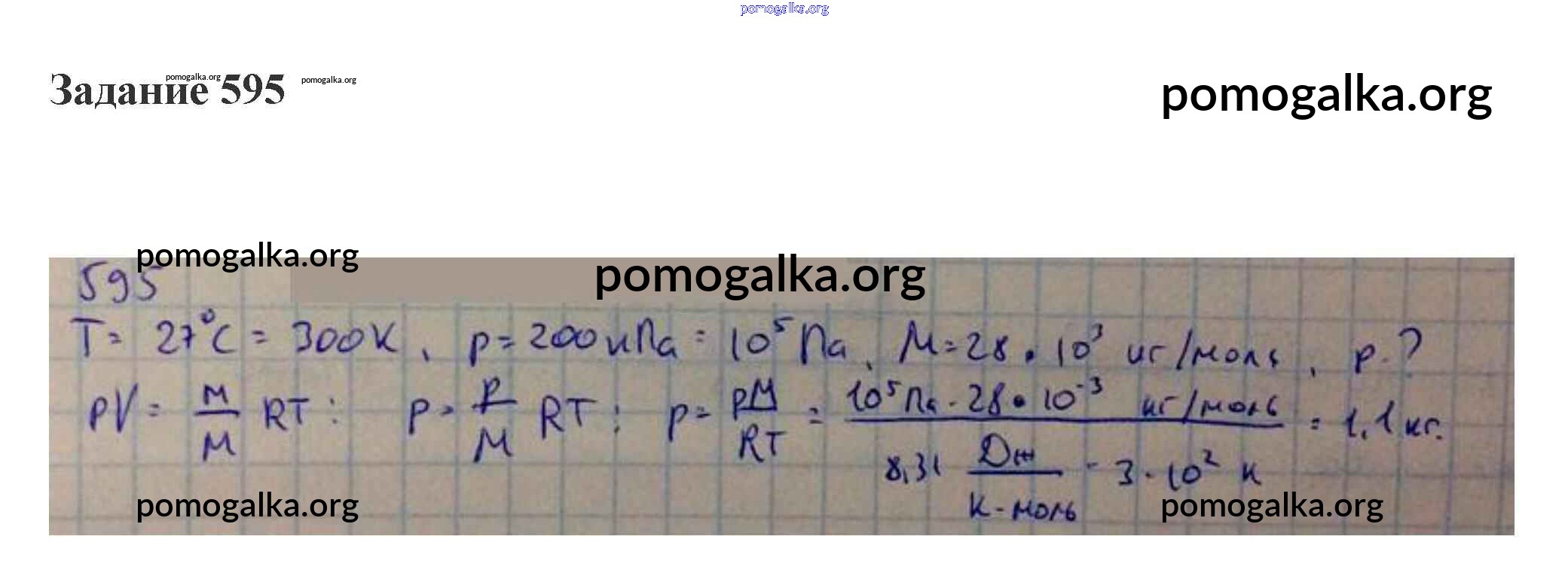 Готовые ответы - Физика 10-11 класс сборник задач Степанова - 27. уравнение состояния идеального газа свойства газов 595