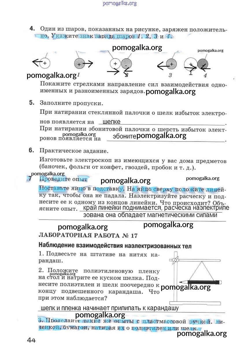 Готовые ответы - Физика Химия 5 класс рабочая тетрадь Гуревич А.Е. - страница 44