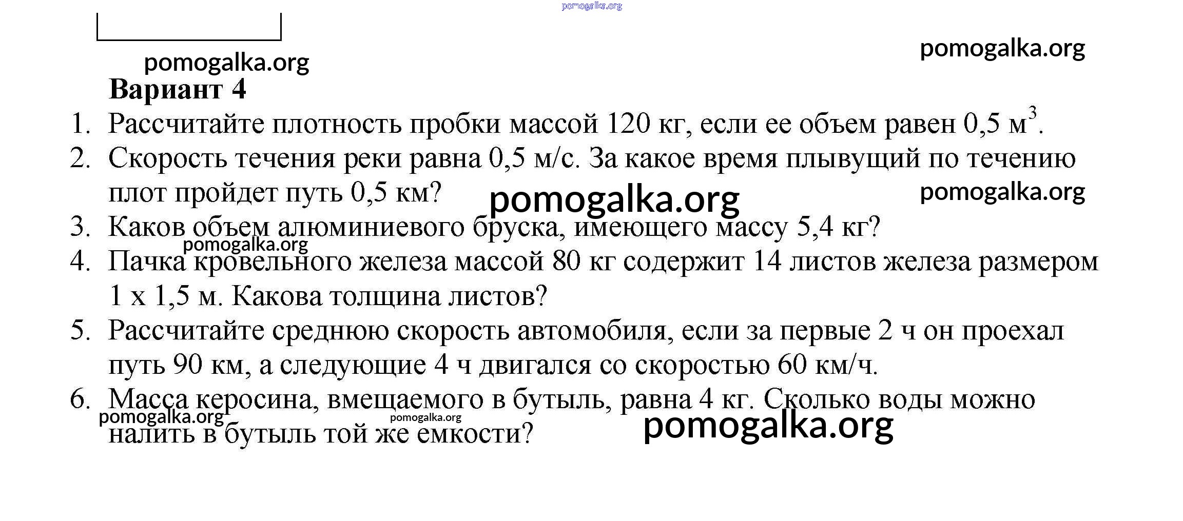 Готовые ответы - Физика 7 класс Дидактические материалы Марон А.Е. (к уч. Перышкина) - кр №-1 контрольная работа Вариант №4