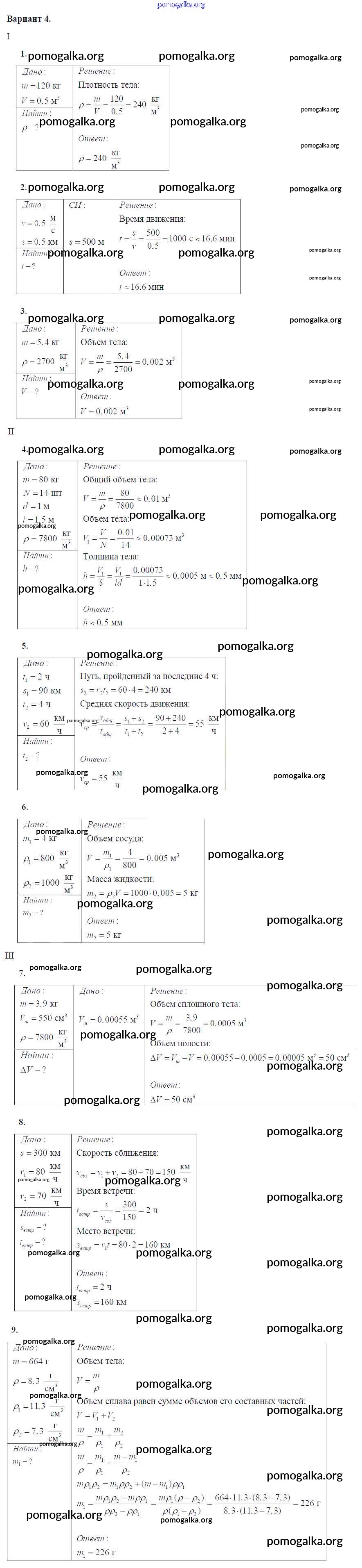 КР №-1. Механическое движение. Плотность вещества