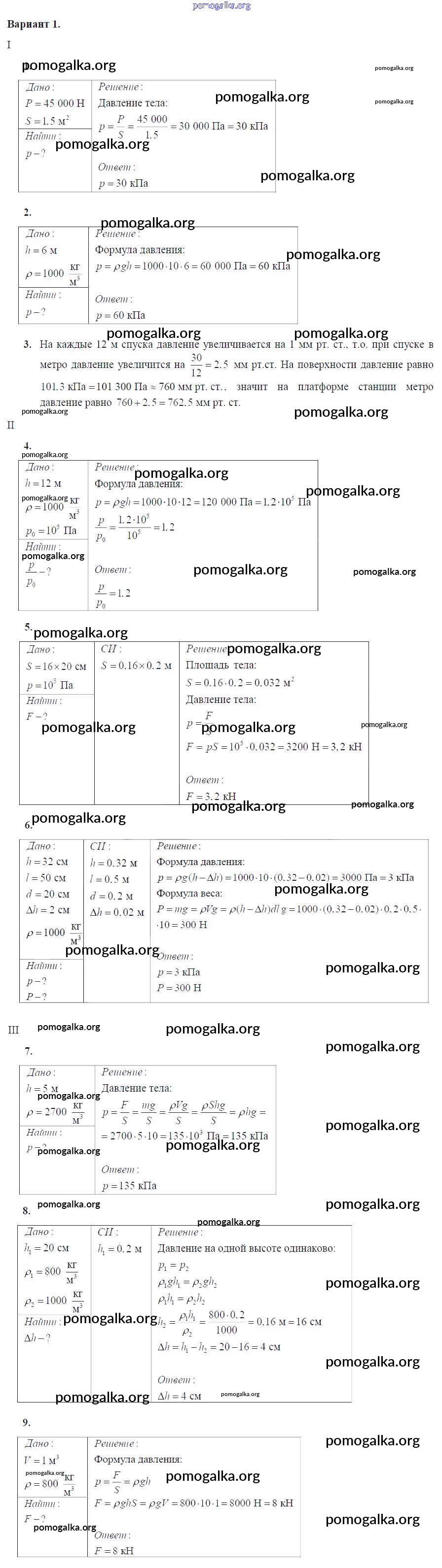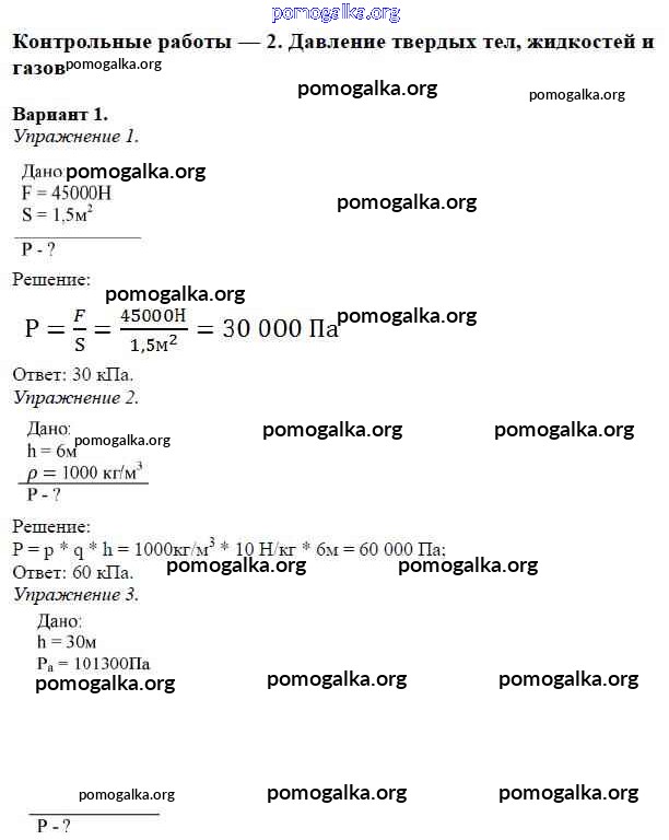 КР №-2. Давление твердых тел, жидкостей и газов
