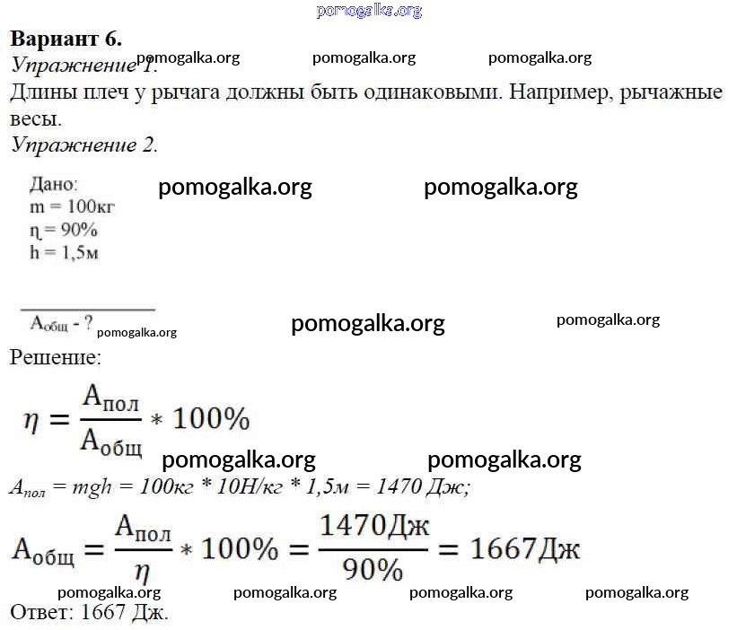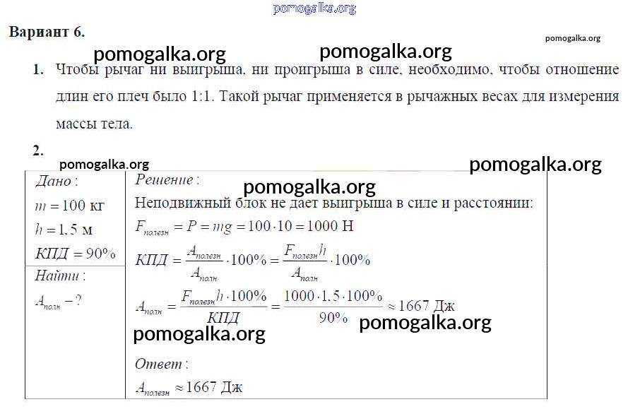 Готовые ответы - Физика 7 класс Дидактические материалы Марон А.Е. (к уч. Перышкина) - ср №-11 самостоятельная работа Вариант №6