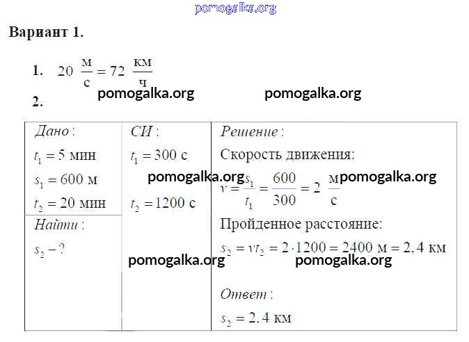 Готовые ответы - Физика 7 класс Дидактические материалы Марон А.Е. (к уч. Перышкина) - ср №-2 самостоятельная работа Вариант №1