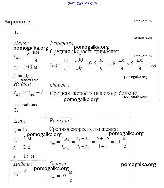 Готовые ответы - Физика 7 класс Дидактические материалы Марон А.Е. (к уч. Перышкина) - ср №-2 самостоятельная работа Вариант №5