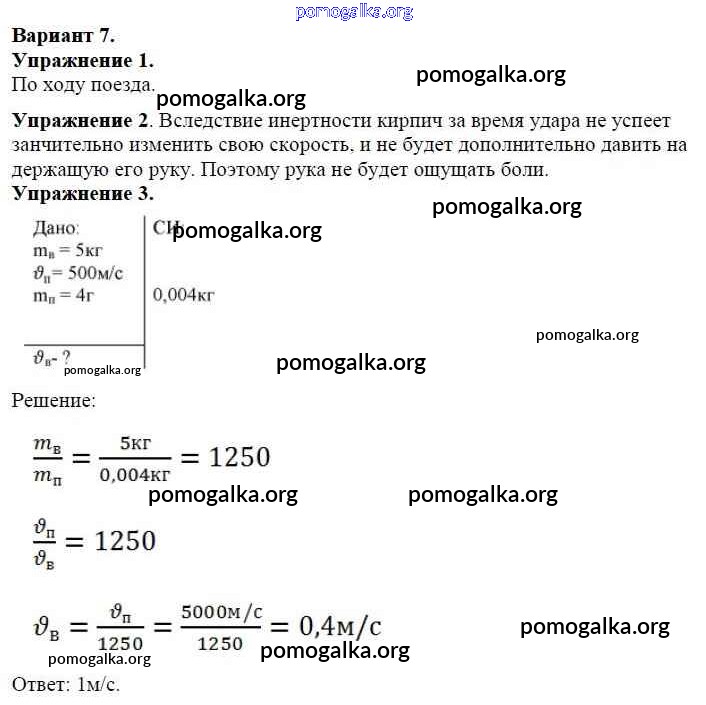 Готовые ответы - Физика 7 класс Дидактические материалы Марон А.Е. (к уч. Перышкина) - ср №-3 самостоятельная работа Вариант №7