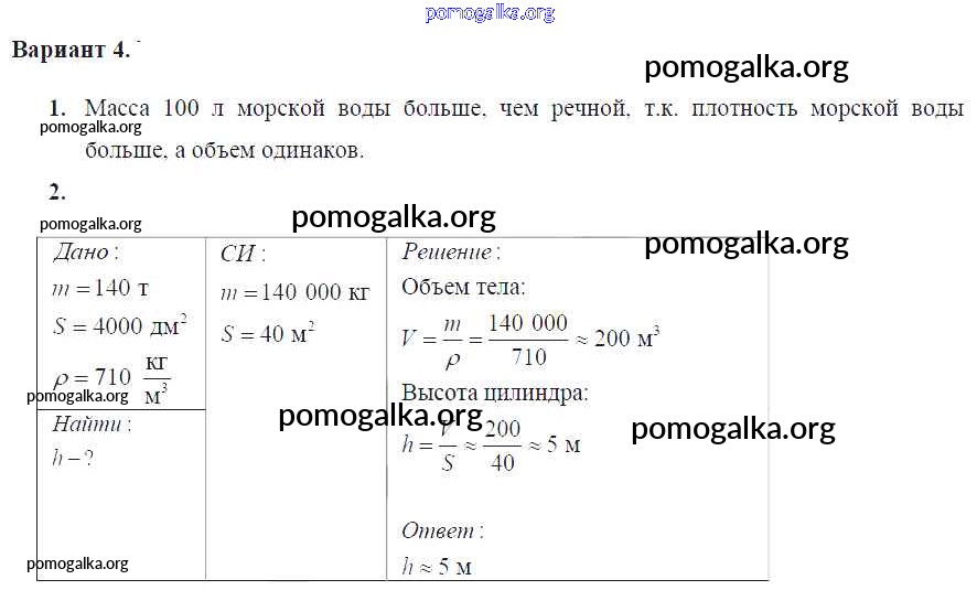 Готовые ответы - Физика 7 класс Дидактические материалы Марон А.Е. (к уч. Перышкина) - ср №-4 самостоятельная работа Вариант №4