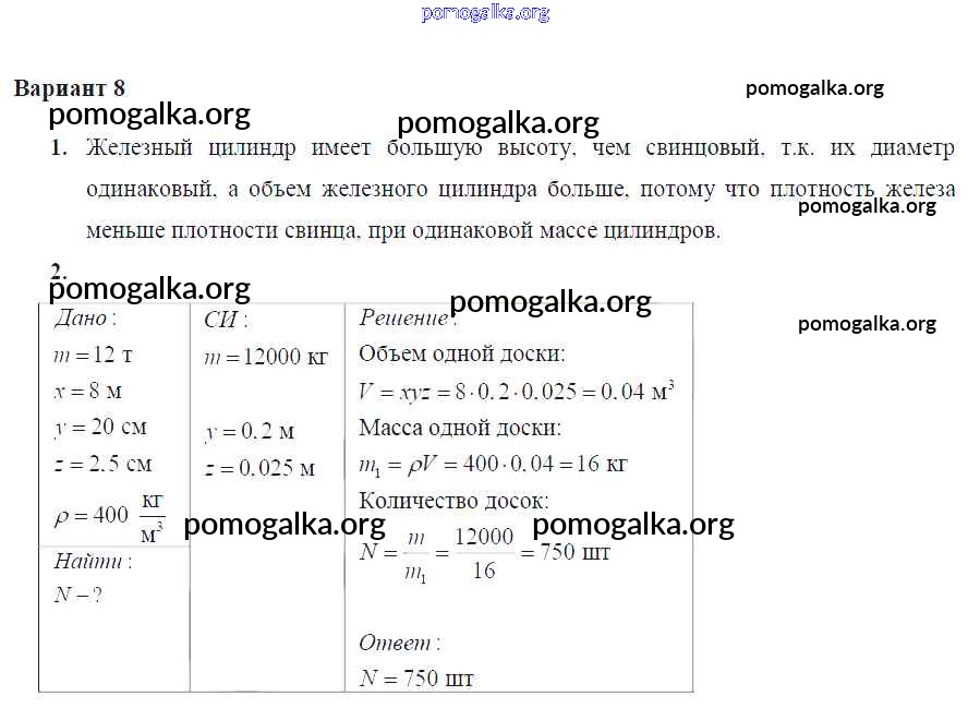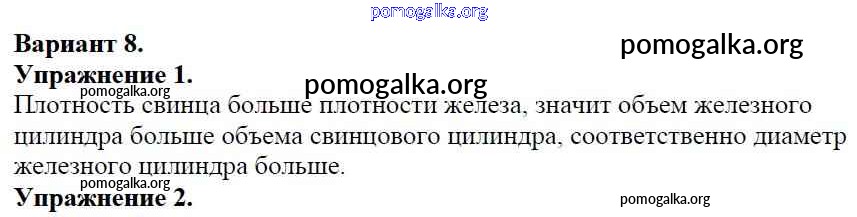 Готовые ответы - Физика 7 класс Дидактические материалы Марон А.Е. (к уч. Перышкина) - ср №-4 самостоятельная работа Вариант №8