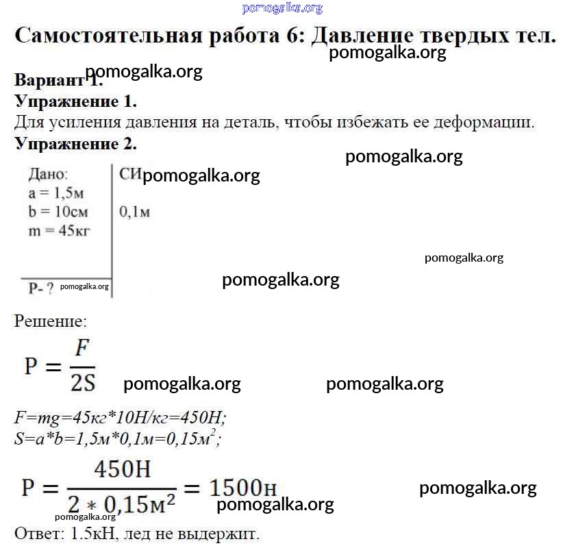 СР №-6. Давление твердых тел