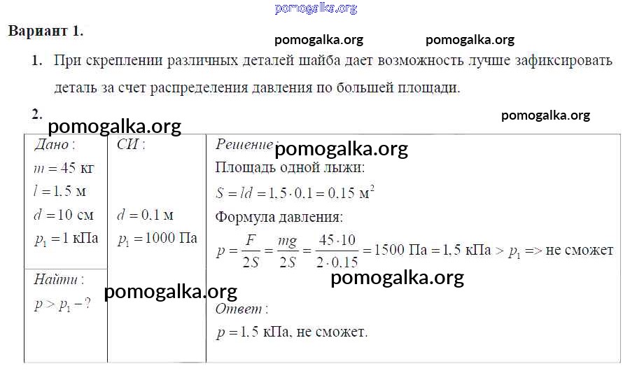 Задание №11. Давление твердых тел