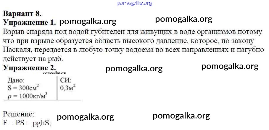 Готовые ответы - Физика 7 класс Дидактические материалы Марон А.Е. (к уч. Перышкина) - ср №-7 самостоятельная работа Вариант №8