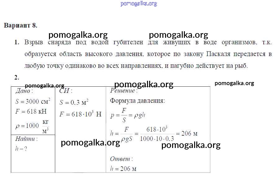 КР №-2. Давление твердых тел, жидкостей и газов