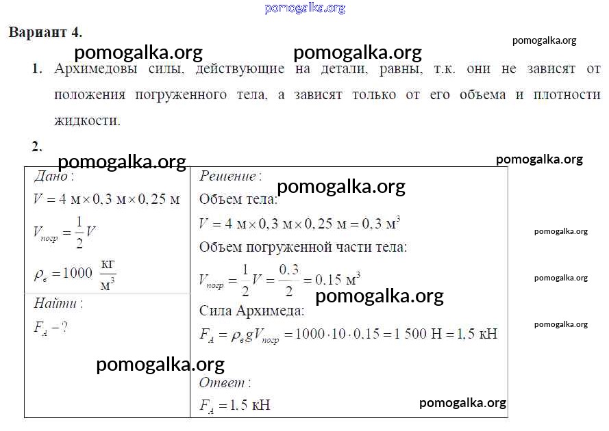 КР №-3. Архимедова сила