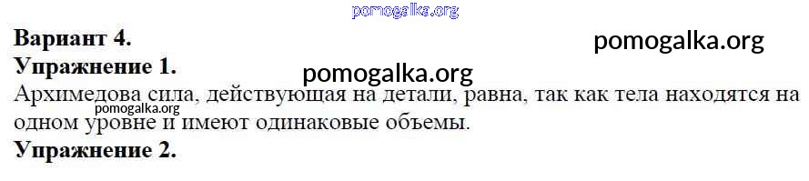 Готовые ответы - Физика 7 класс Дидактические материалы Марон А.Е. (к уч. Перышкина) - ср №-8 самостоятельная работа Вариант №4