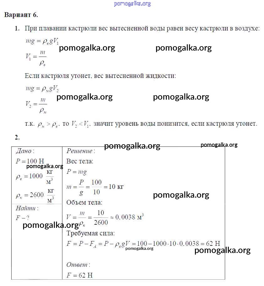 КР №-3. Архимедова сила