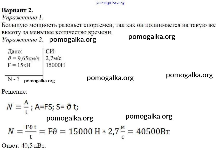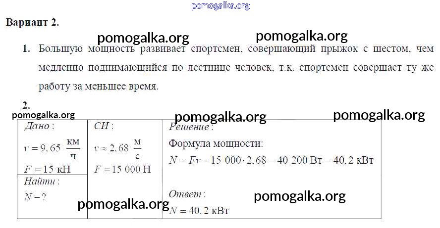 Готовые ответы - Физика 7 класс Дидактические материалы Марон А.Е. (к уч. Перышкина) - ср №-9 самостоятельная работа Вариант №2