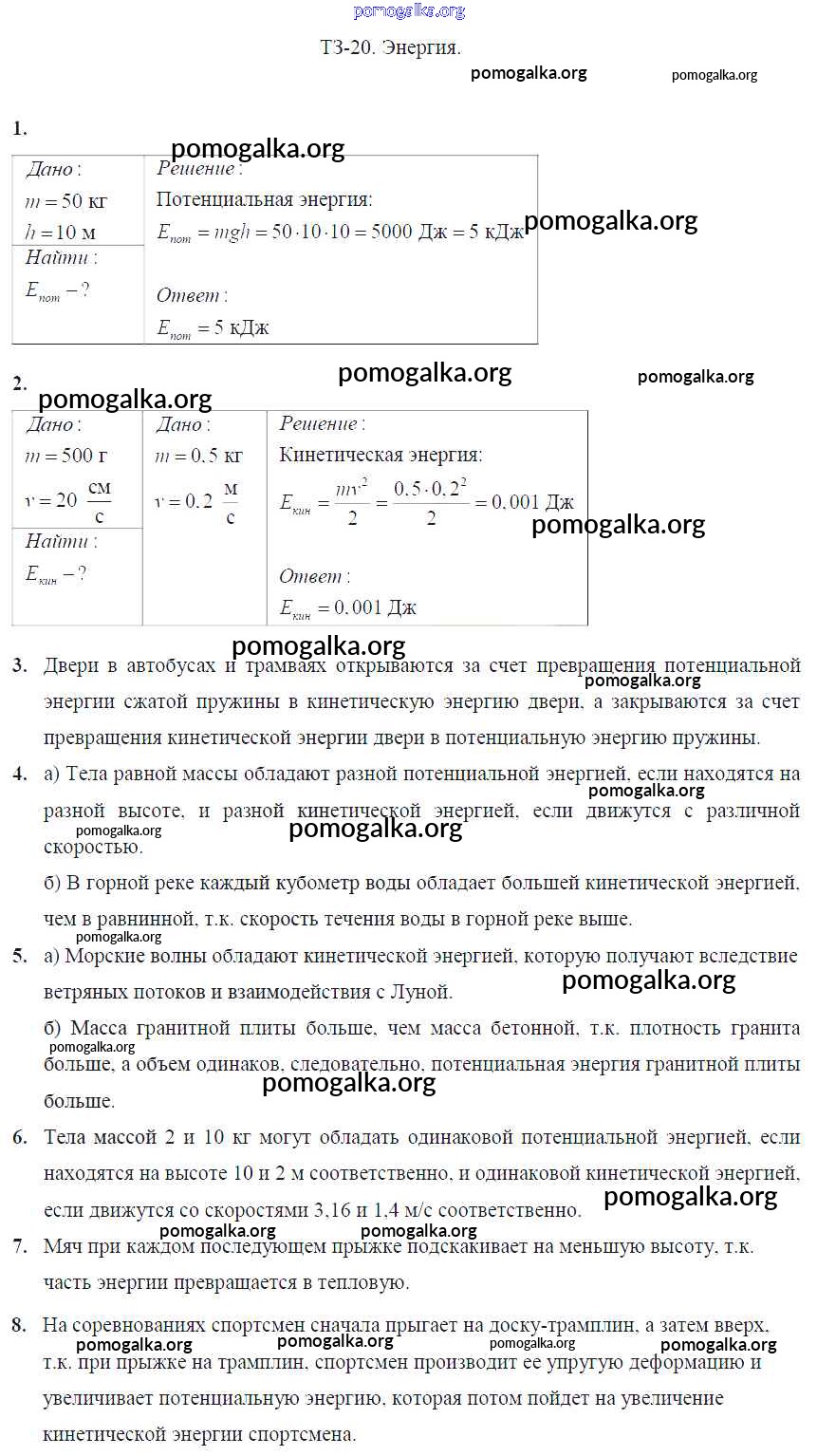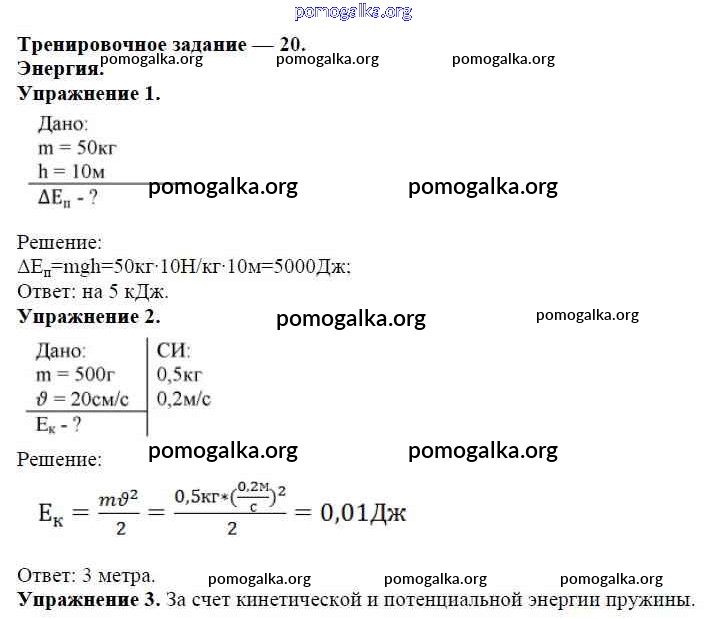 Готовые ответы - Физика 7 класс Дидактические материалы Марон А.Е. (к уч. Перышкина) - задание Задание №20. Энергия