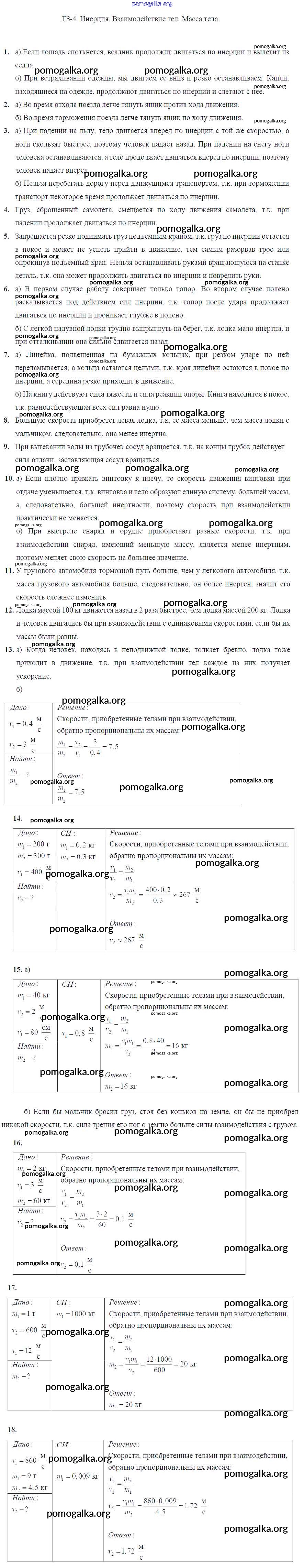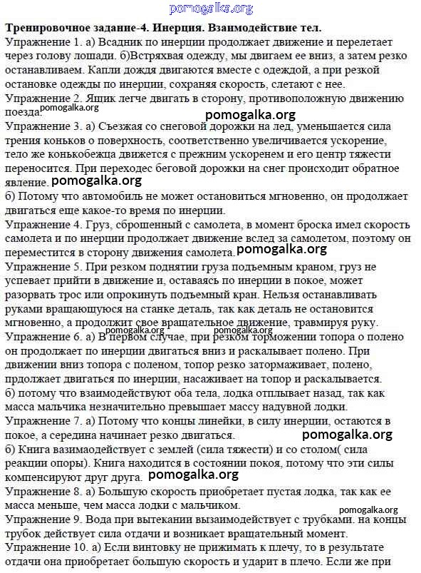 Готовые ответы - Физика 7 класс Дидактические материалы Марон А.Е. (к уч. Перышкина) - задание Задание №4. Инерция. Взаимодействие тел. Масса тела