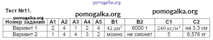 Готовые ответы - Физика 7 класс контрольно-измерительные материалы Зорин Н.И. - тест 11