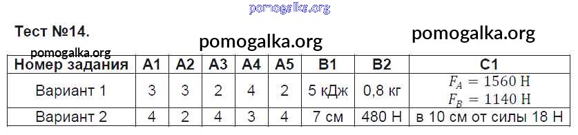 Готовые ответы - Физика 7 класс контрольно-измерительные материалы Зорин Н.И. - тест 14