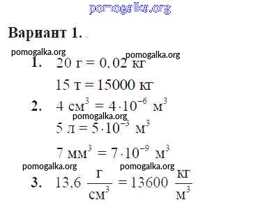 Готовые ответы - Физика 7 класс Контрольные и самостоятельные работы Громцева О.И. (к уч. Перышкина) - ср №15. плотность вещества самостоятельная работа Вар. 1