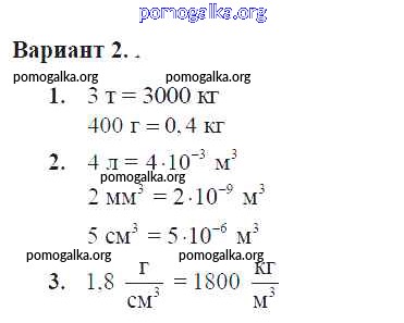 Готовые ответы - Физика 7 класс Контрольные и самостоятельные работы Громцева О.И. (к уч. Перышкина) - ср №15. плотность вещества самостоятельная работа Вар. 2