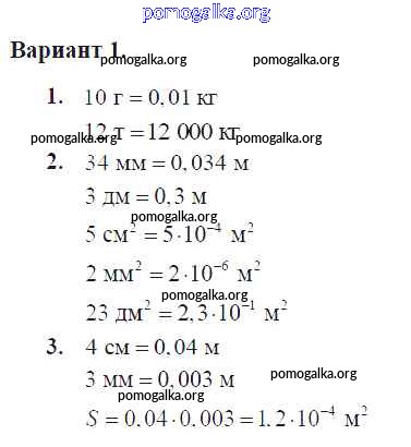 Готовые ответы - Физика 7 класс Контрольные и самостоятельные работы Громцева О.И. (к уч. Перышкина) - ср №23. единицы измерения массы, длины и площади СИ самостоятельная работа Вар. 1