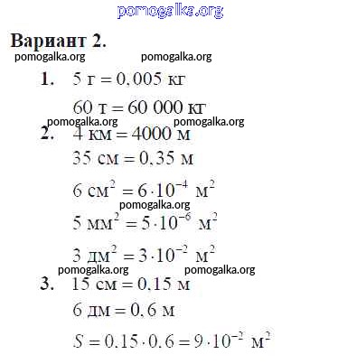 Готовые ответы - Физика 7 класс Контрольные и самостоятельные работы Громцева О.И. (к уч. Перышкина) - ср №23. единицы измерения массы, длины и площади СИ самостоятельная работа Вар. 2