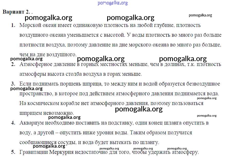 Готовые ответы - Физика 7 класс Контрольные и самостоятельные работы Громцева О.И. (к уч. Перышкина) - ср №31. вес воздуха. атмосферное давление самостоятельная работа Вар. 2