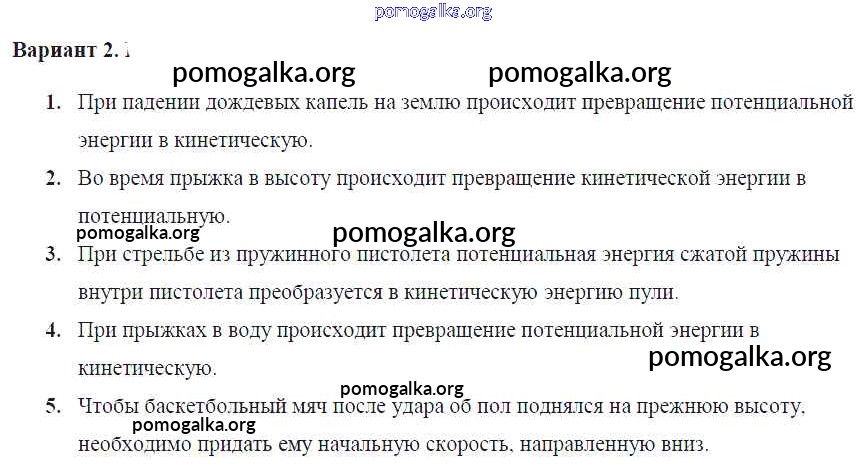 Готовые ответы - Физика 7 класс Контрольные и самостоятельные работы Громцева О.И. (к уч. Перышкина) - ср №51. превращение одного вида механической энергии в другой самостоятельная работа Вар. 2