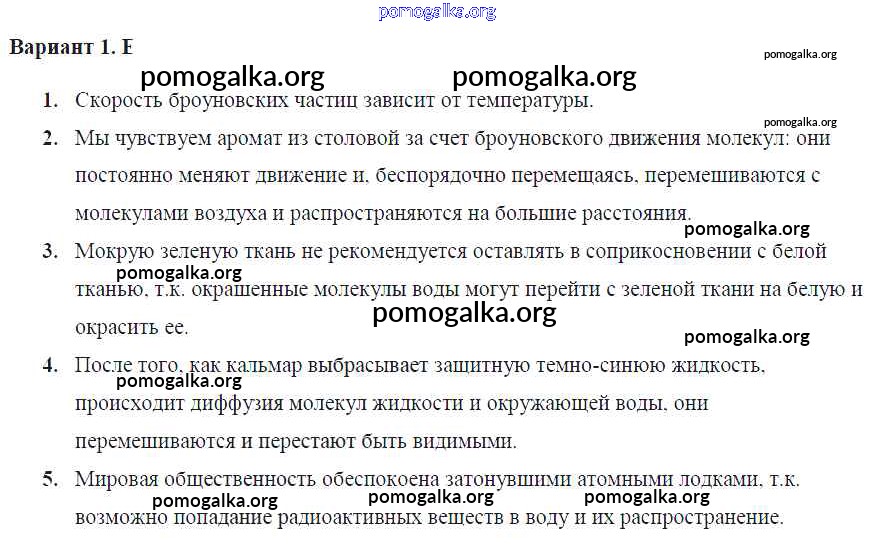 Готовые ответы - Физика 7 класс Контрольные и самостоятельные работы Громцева О.И. (к уч. Перышкина) - ср №7. броуновское движение. диффузия в газах, жидкостях и твердых телах самостоятельная работа Вар. 1