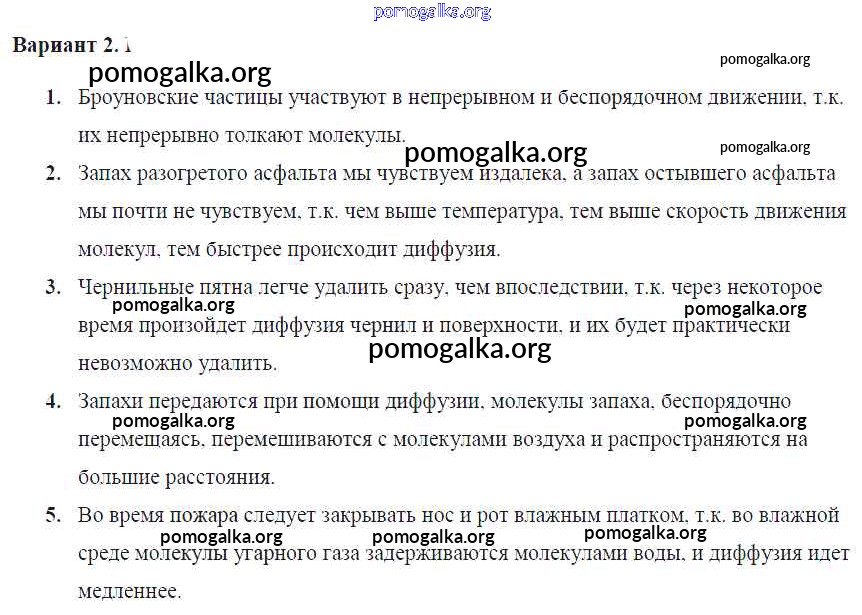 Готовые ответы - Физика 7 класс Контрольные и самостоятельные работы Громцева О.И. (к уч. Перышкина) - ср №7. броуновское движение. диффузия в газах, жидкостях и твердых телах самостоятельная работа Вар. 2