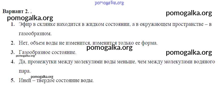 Готовые ответы - Физика 7 класс Контрольные и самостоятельные работы Громцева О.И. (к уч. Перышкина) - ср №9. агрегатные состояния вещества. Различие в молекулярном строении твердых тел, жидкостей и газов самостоятельная работа Вар. 2