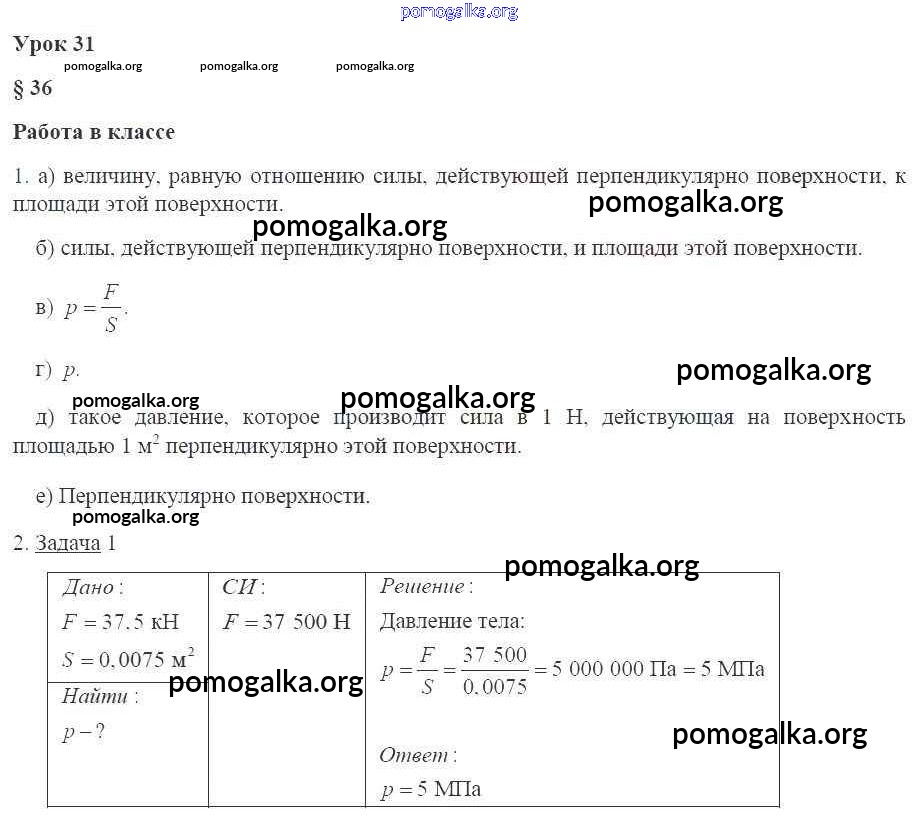 Готовые ответы - Физика 7 класс рабочая тетрадь Минькова Р.Д. (к уч. Перышкина) - урок № 31