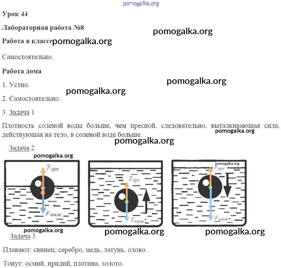 Готовые ответы - Физика 7 класс рабочая тетрадь Минькова Р.Д. (к уч. Перышкина) - урок № 44