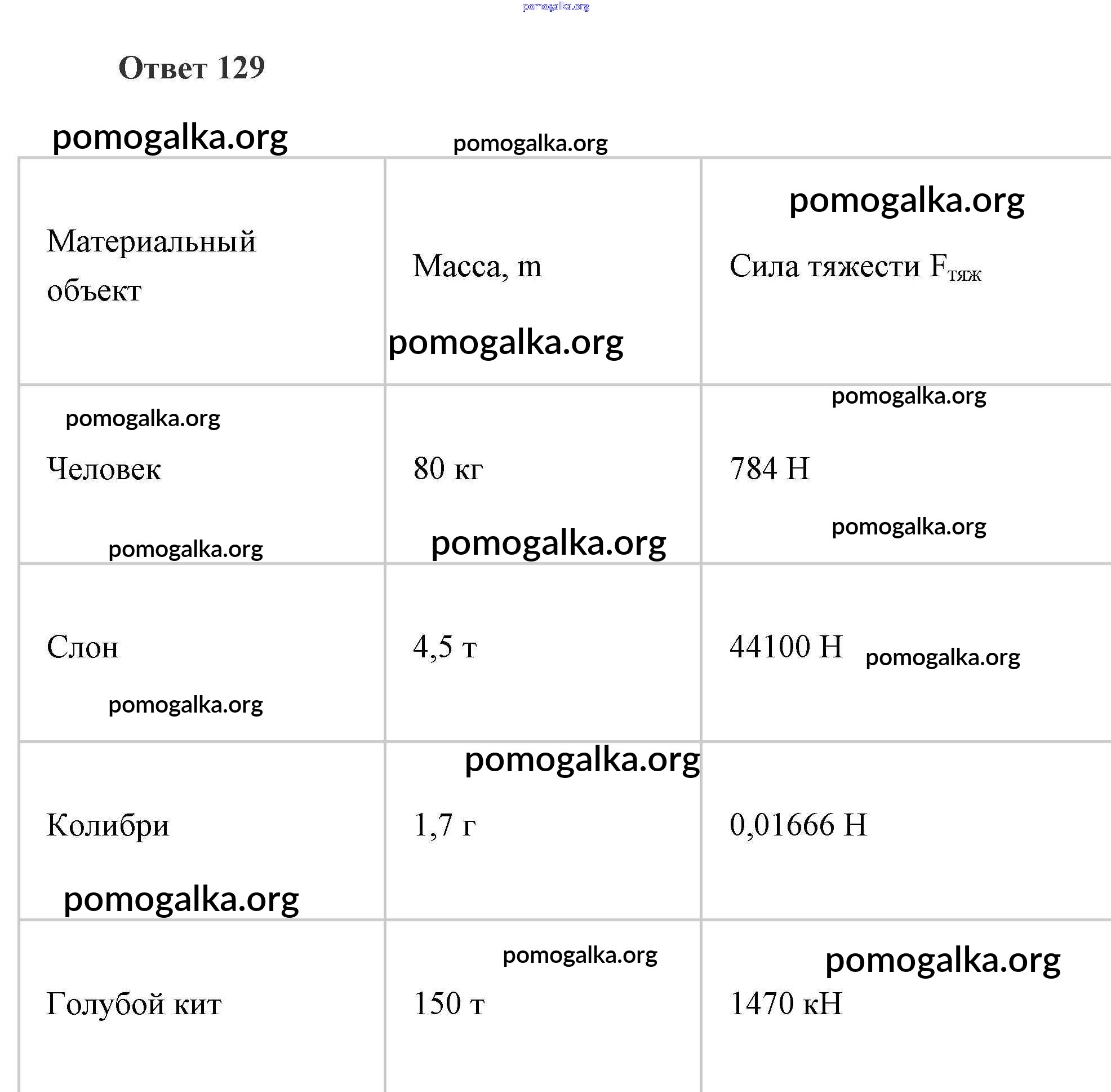 Готовые ответы - Физика 7 класс рабочая тетрадь Пурышева - сила тяжести механические явления 129